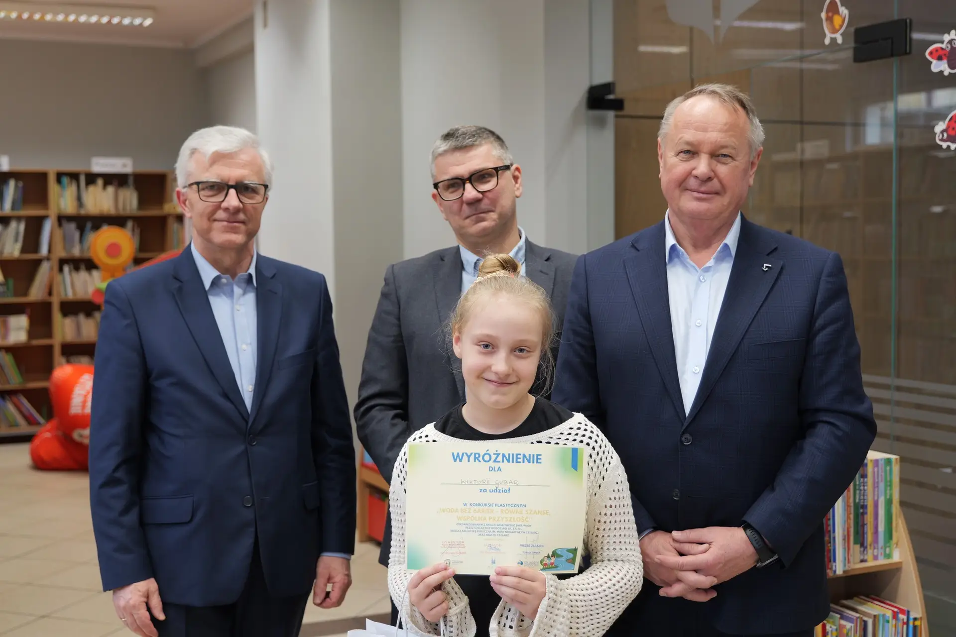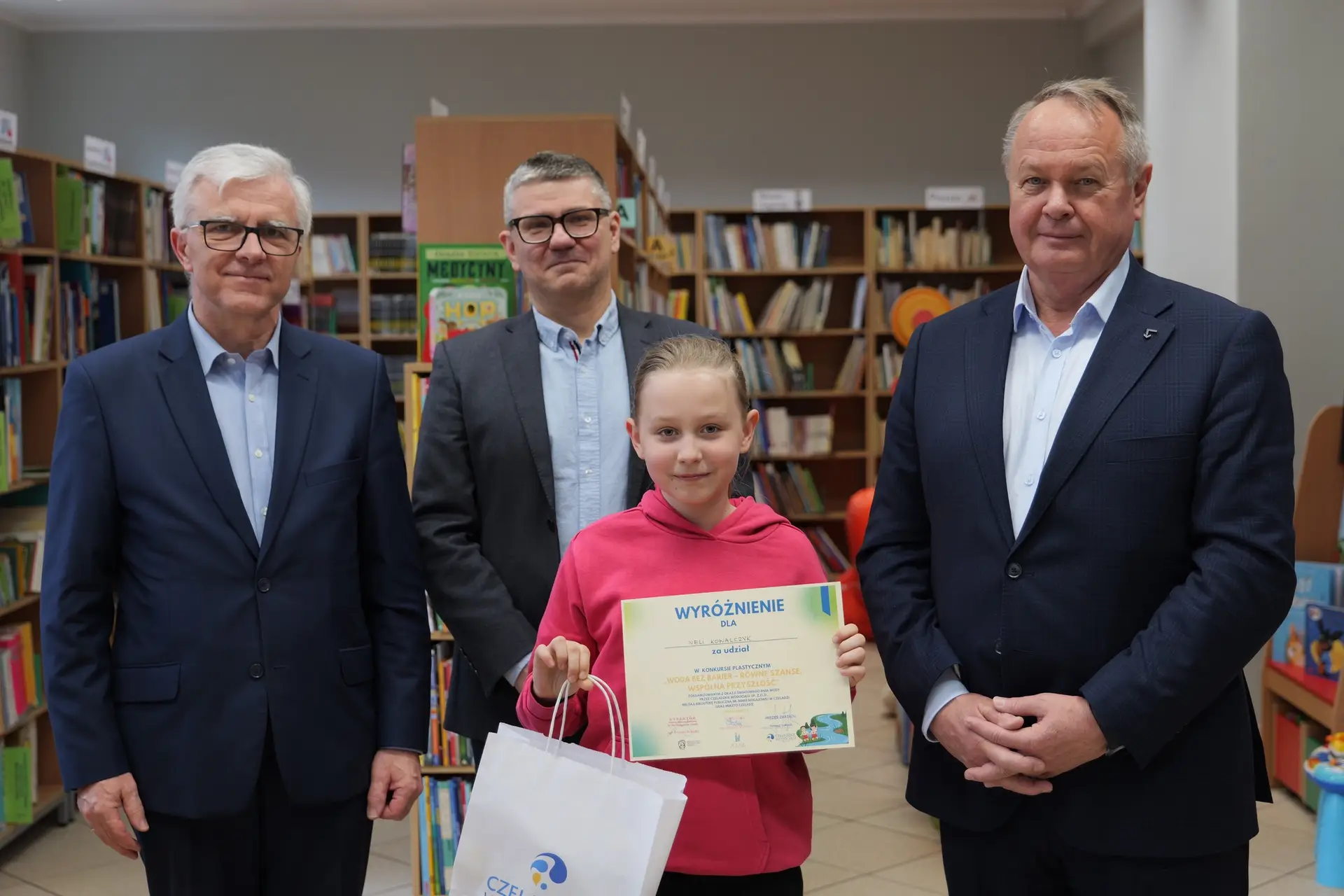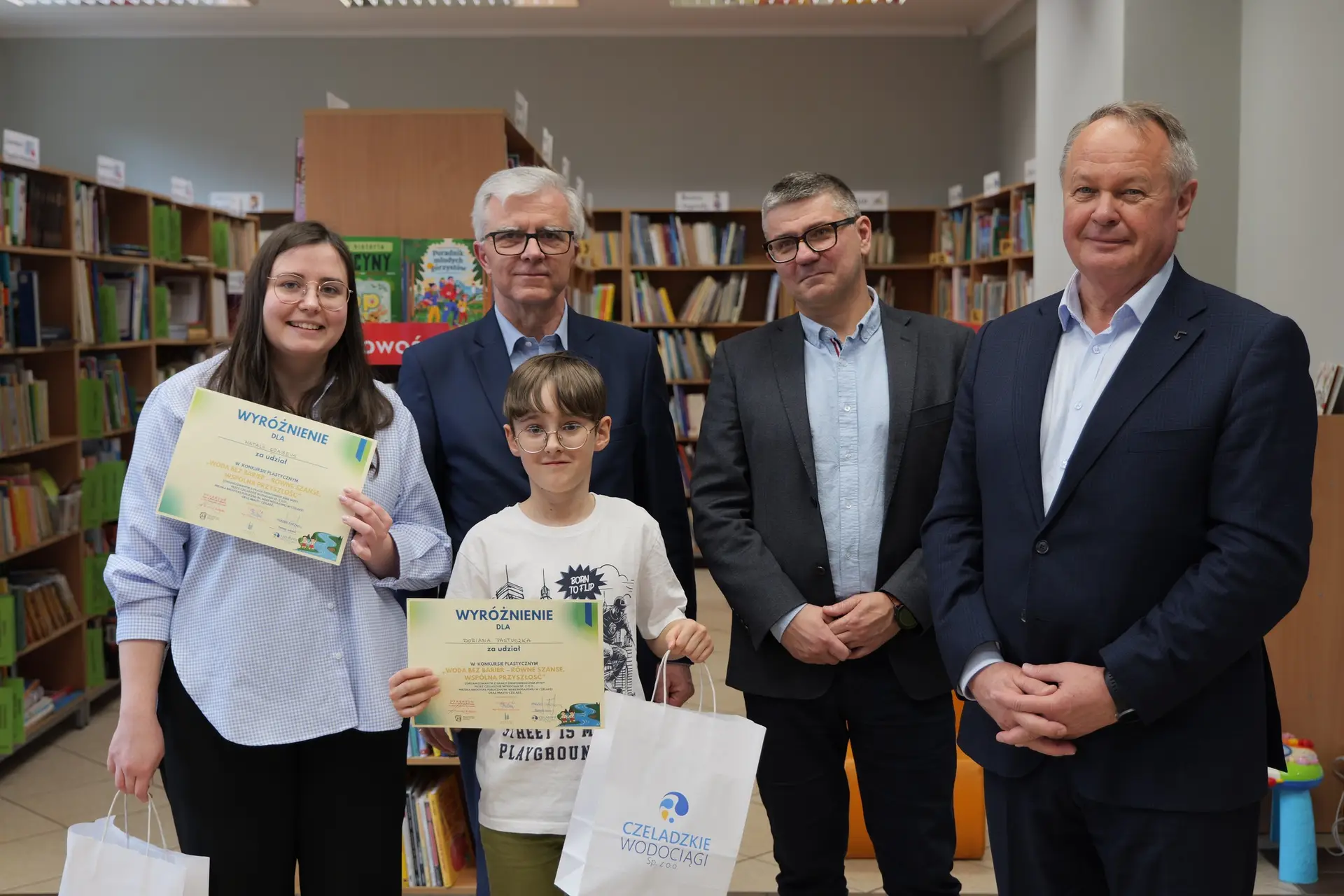 Spotkanie przebiegło w bardzo miłej i inspirującej atmosferze, a młodzi artyści osobiście odebrali gratulacje oraz nagrody z rąk Zastępcy Burmistrza ds. Społecznych Andrzeja Mentla, Prezesa Czeladzkich Wodociągów Tomasza Sołtysika oraz Dyrektora Biblioteki Miejskiej Krzysztofa Kobiałki. Uczestnicy zachwycili swoją kreatywnością, wrażliwością oraz wyjątkowym spojrzeniem na problem równego dostępu do czystej