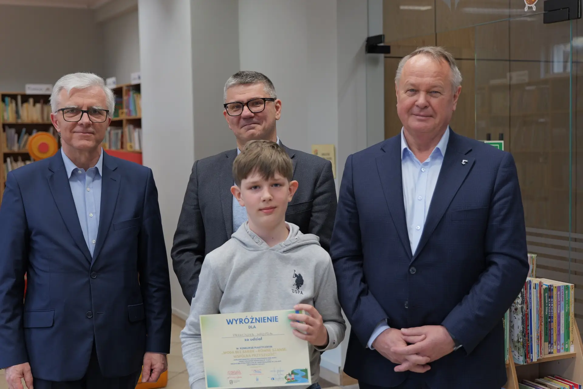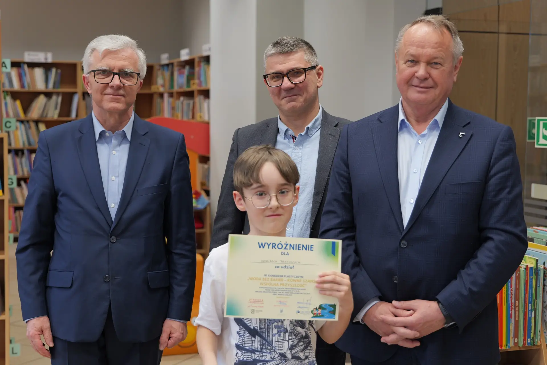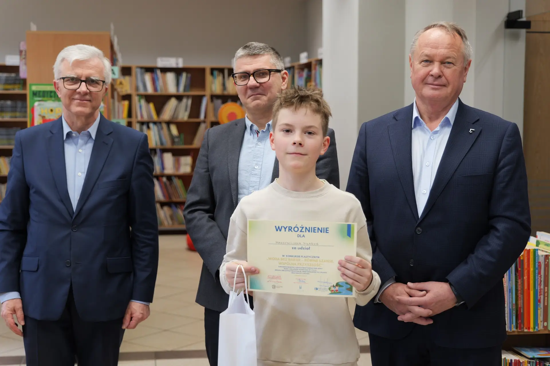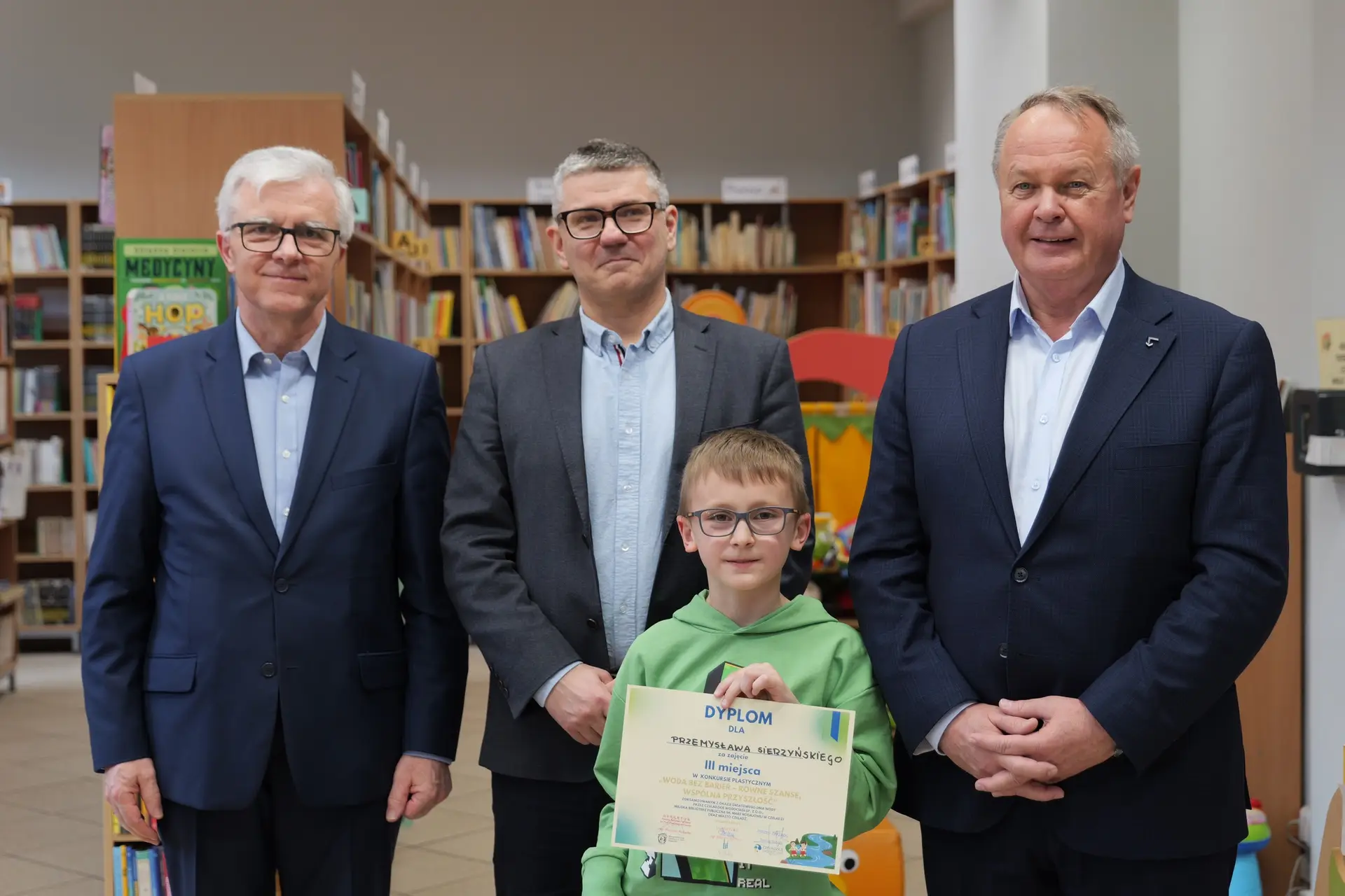 Spotkanie przebiegło w bardzo miłej i inspirującej atmosferze, a młodzi artyści osobiście odebrali gratulacje oraz nagrody z rąk Zastępcy Burmistrza ds. Społecznych Andrzeja Mentla, Prezesa Czeladzkich Wodociągów Tomasza Sołtysika oraz Dyrektora Biblioteki Miejskiej Krzysztofa Kobiałki. Uczestnicy zachwycili swoją kreatywnością, wrażliwością oraz wyjątkowym spojrzeniem na problem równego dostępu do czystej